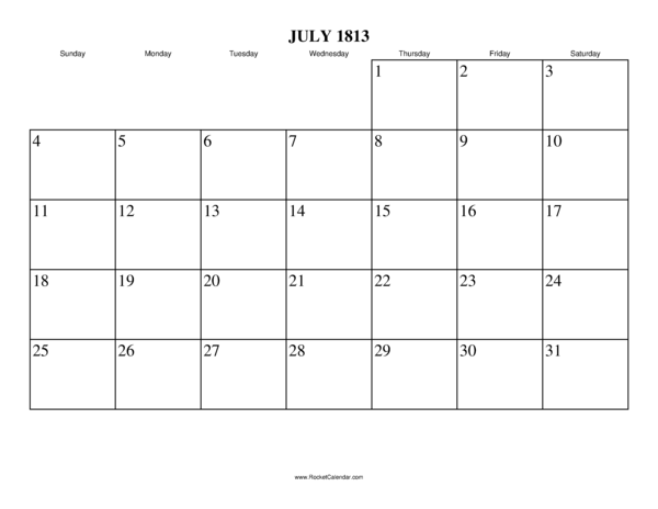 Free printable calendar for July 1813. View online or print in PDF format.