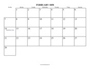 Next month: March 1858 | Previous month: January 1858 | All 1858 Calendars | Calendars for other years