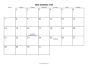 December 16 1919: Hanukkah begins at sunsetNext month: January 1920 | Previous month: November 1919 | All 1919 Calendars | Calendars for other years