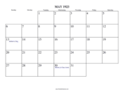 Next month: June 1923 | Previous month: April 1923 | All 1923 Calendars | Calendars for other years