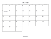 Next month: June 1927 | Previous month: April 1927 | All 1927 Calendars | Calendars for other years