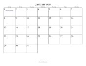 Free printable calendar for January 1928. View online or print in PDF format.