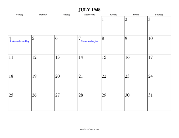 Next month: August 1948 | Previous month: June 1948 | All 1948 Calendars | Calendars for other years