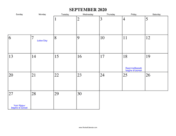 Next month: October 2020 | Previous month: August 2020 | All 2020 Calendars | Calendars for other years