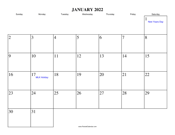 Free printable calendar for January 2022. View online or print in PDF format.