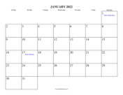 Next month: February 2022 | Previous month: December 2021 | All 2022 Calendars | Calendars for other years