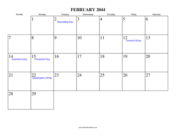 February 2 2044: Groundhog Day February 12 2044: Lincoln's Birthday February 14 2044: Valentine's Day February 15 2044: Presidents Day February 22 2044: Washington's Birthday