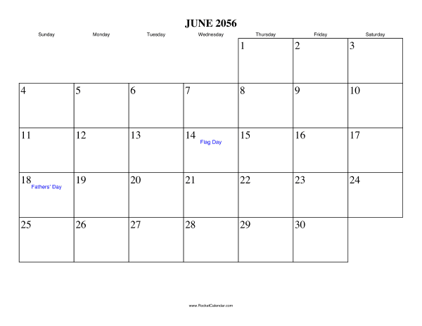 Next month: July 2056 | Previous month: May 2056 | All 2056 Calendars | Calendars for other years