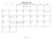 February 2 2061: Groundhog Day February 12 2061: Lincoln's Birthday February 14 2061: Valentine's Day February 21 2061: Presidents Day February 22 2061: Washington's Birthday