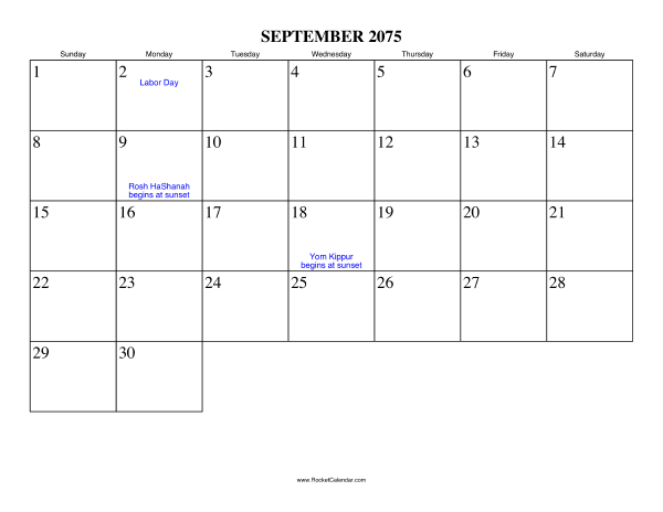 Next month: October 2075 | Previous month: August 2075 | All 2075 Calendars | Calendars for other years