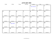January 1 2026: New Years DayNext month: February 2026 | Previous month: December 2025 | All 2026 ISO Calendars | Calendars for other years