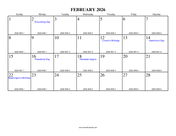 February 2 2026: Groundhog DayNext month: March 2026 | Previous month: January 2026 | All 2026 ISO Calendars | Calendars for other years