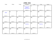 Next month: May 2026 | Previous month: March 2026 | All 2026 ISO Calendars | Calendars for other years