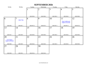 September 7 2026: Labor DayNext month: October 2026 | Previous month: August 2026 | All 2026 ISO Calendars | Calendars for other years