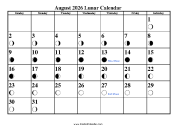 Free printable lunar calendar for August 2026. View online or print in PDF format.