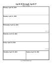 Free printable weekly calendar for week starting April, 20 2026. View online or print in PDF format.
