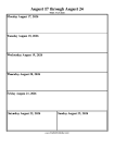 Free printable weekly calendar for week starting August, 17 2026. View online or print in PDF format.