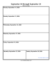 Free printable weekly calendar for week starting September, 14 2026. View online or print in PDF format.